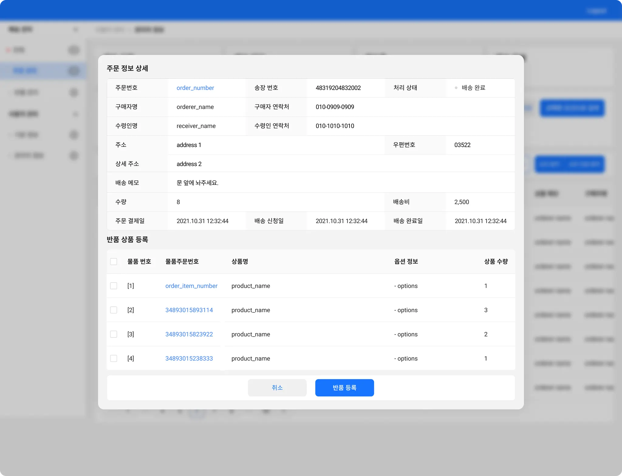 반품 관리에서 주문 건을 삭제할 경우, 해당 주문 건의 [주문 관리]에서 다시 조회할 수 있으며, [반품 관리]목록에서는 더이상 해당 주문 건을 조회할 수 없습니다.